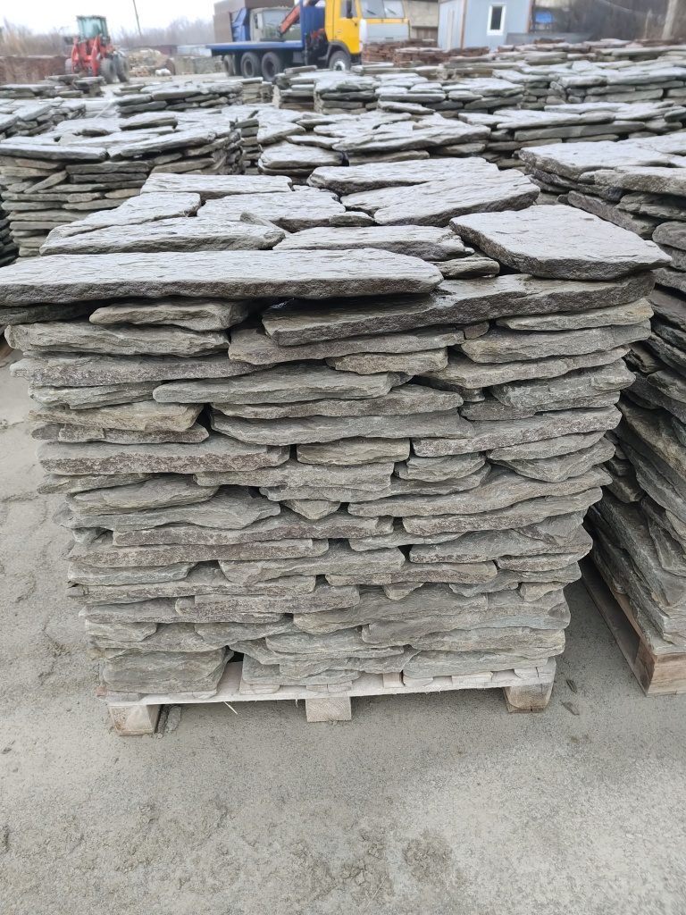 Плитняк песчаник дракон серо-зелёный галтованный для облицовочных работ 10-20 мм