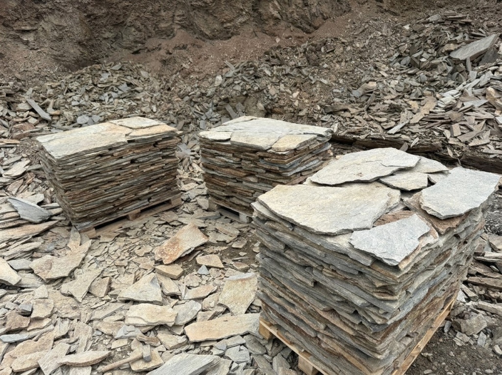 Вне всяких сомнений, если Вам нужно небольшое количество камня – 1-2-3 поддона, и плитняк Вам нужен в ближайшее время, т.к. строительная бригада уже готова приступить к работе с камнем – лучшим выходом будет покупка плитняка на ближайшем строительном рынке.