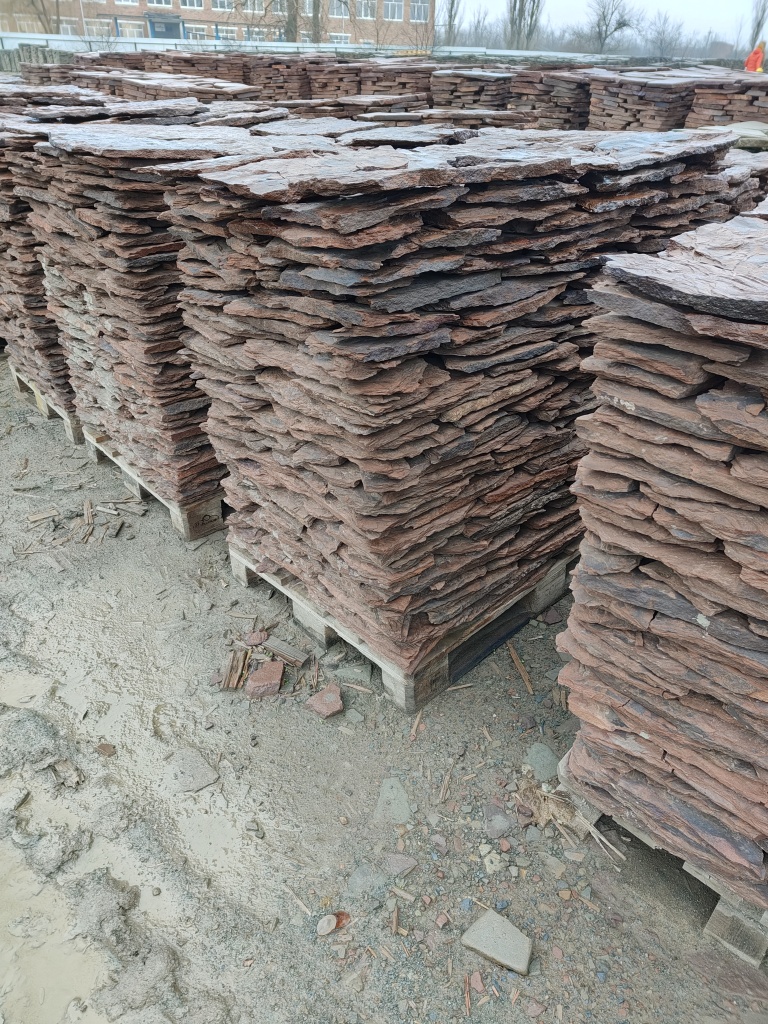 Плитняк песчаник дракон красный для облицовки цоколя, отмостки 20-35 мм